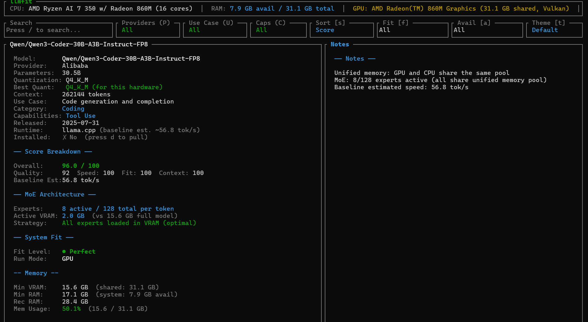 GPU: AMD Radeon(TM) 860M Graphics (unified memory, 31.12 GB shared, Vulkan)